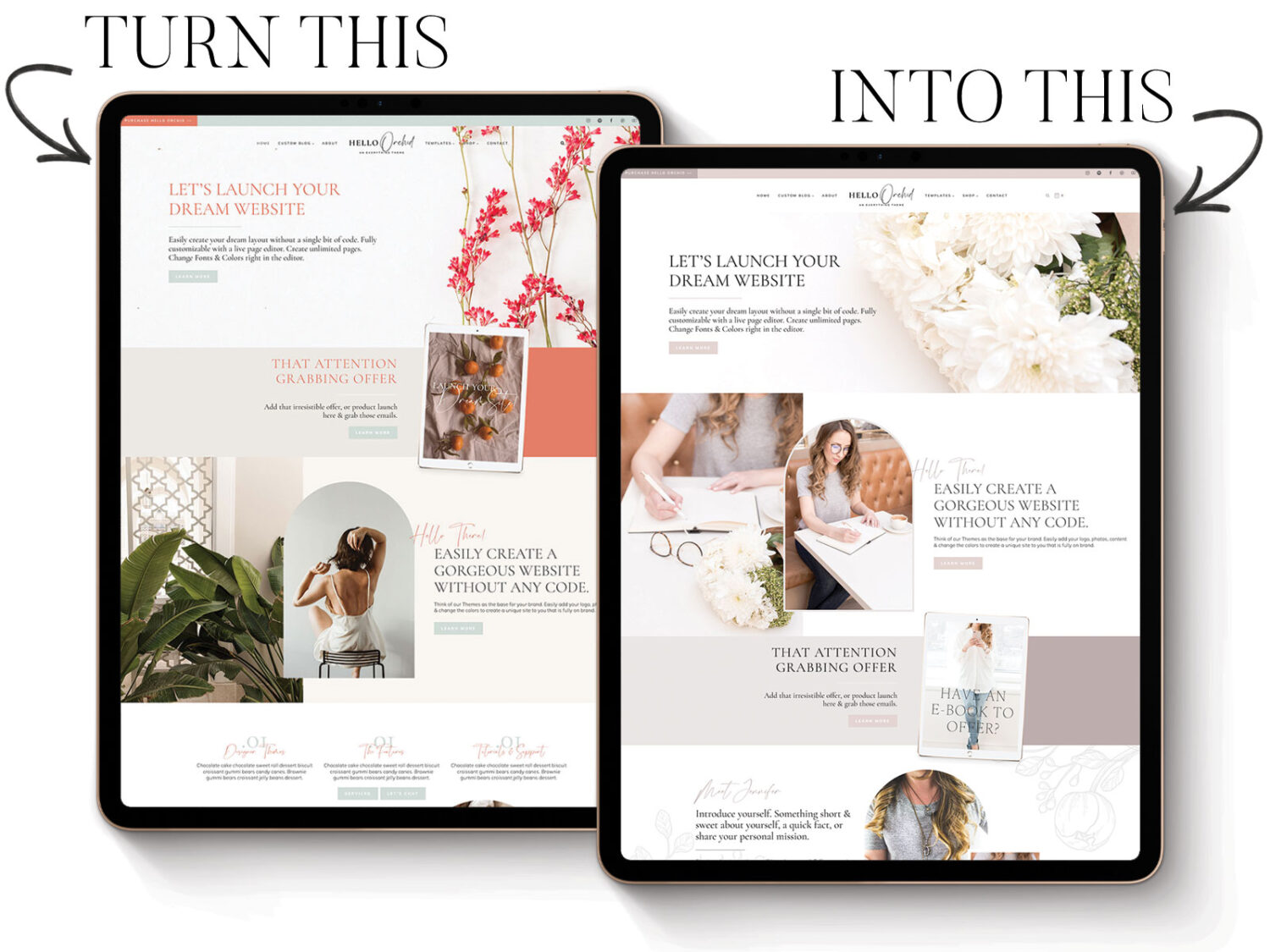We took the guess work out of the layout, so all you have to do is swap out colors and images, add in your written content, and make any small tweaks you’d like.