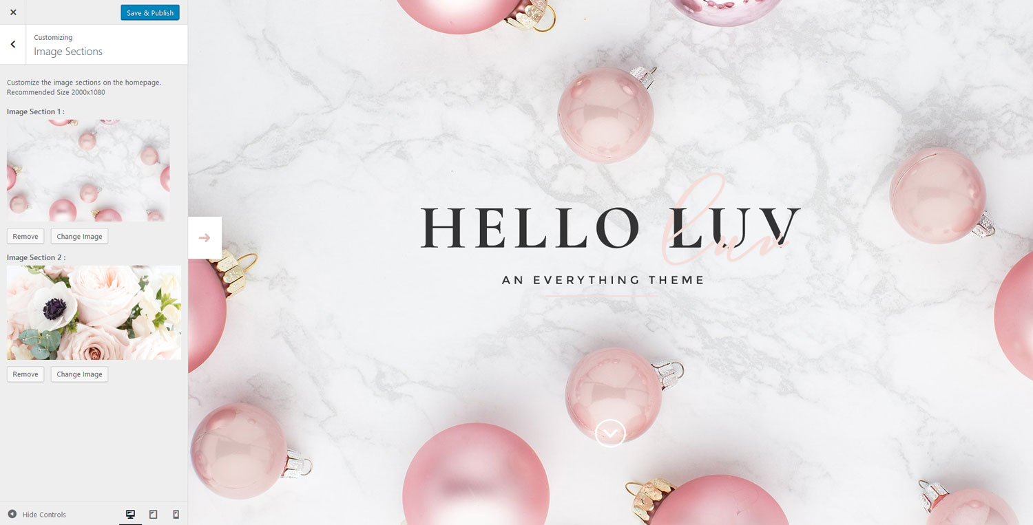 All of the images and colors in the theme are designed to be changed so they can match your brand. The colors can be changed in the customizer, as well as the full width image section and Parallax section.